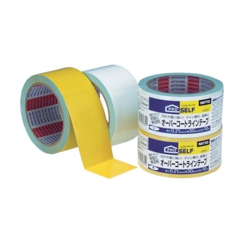 テープ表面に汚れや傷が付きにくいコーティング加工をしています。基材にはポリオレフィンを使用、また鉛などの重金属を含まない有機系顔料を使用し、粘着剤にも無溶剤タイプを使用した環境対応製品です。屋内用。案 |