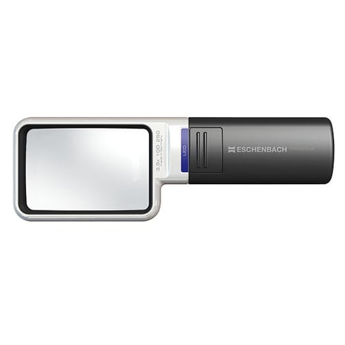 LEDライト付きで鮮やかに拡大。ゆがみの少ない非球面レンズ(エッシェンバッハ独自開発PXM光学樹脂レンズ)で傷が付きにくく、明るく拡大します。輝度調節キャップをライト部分にはめ込んでまぶしさを調節でき |