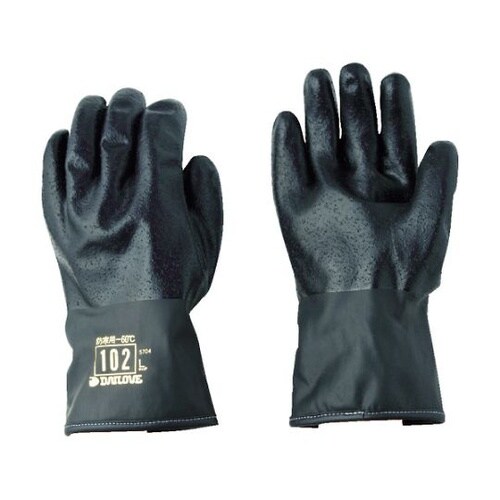−60℃環境下でも硬くならないポリウレタンを使用した防寒用手袋です。ダイローブ102の黒タイプです。熱湯でも樹脂の軟化や硬化はありません。表面粒子で滑りに強く、インナーがボアになっているので高い保温性