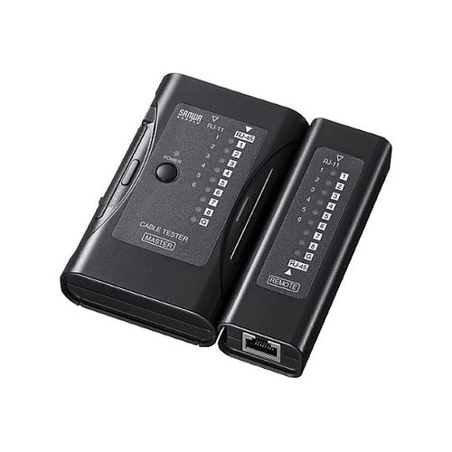 ケーブルの導通・断線・結線ミスをチェック、親機・子機分離タイプのLANケーブルテスターRJ−45コネクタ付きのUTP・STPケーブル(EIA/TIA−568A/568B)、RJ−11コネクタ付きのモジ |