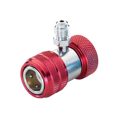 ハンドル操作でバルブコア(ムシ)の押し戻しが可能 !R134aカーエアコンの冷媒封入及び冷媒回収時に使用します。(一部車種によっては取付けられないものもあります。) |