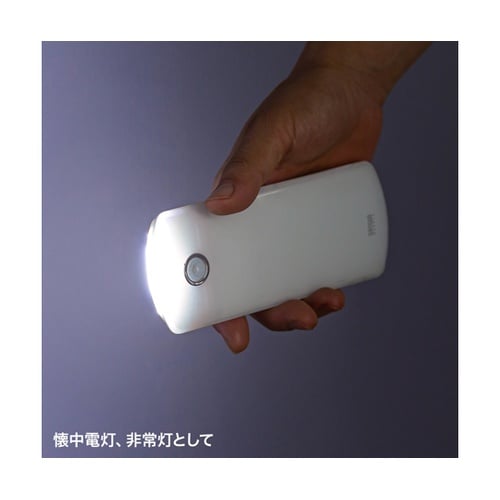 人感センサー付きLEDライトで、感知すると自動的にLEDが点灯し、足元を明るく照らします。取り外した時には、自動的に上部のLEDが光りますので、緊急時にもすぐに対応できます。表面のLED発光の面が平ら |
