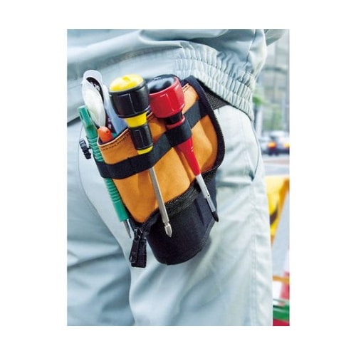 ツールバッグ・工具立て・腰袋の3パターンの使い方ができるツールケースです。腰袋として使用の際は、外側にも工具が吊れます。作業用途に合わせて工具の置き方を自由に選べる新感覚のツールバッグです。 |