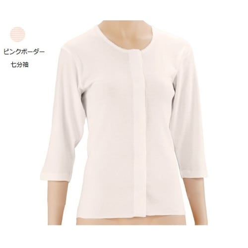 PHワンタッチ肌着 前開 婦人 七分袖 L ピンクボーダー 74820