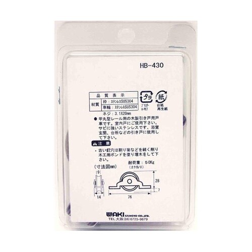 甲丸型レール用の木製引き戸用戸車です。室内戸にご使用下さい。サビに強いステンレスです。浴室、玄関、台所などの引き戸に使用して下さい。古い釘穴は割り箸などを細く削り木工用ボンドを塗り埋木をして下さい。 |
