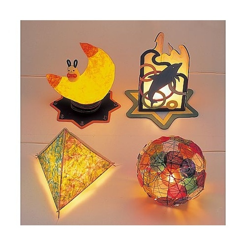 台に15ヶ所0.3cmの穴が開いていますので針金や竹ひごなどを差せばランプシェードの骨組ができます。創作性の高い作品が手軽にできます。 |