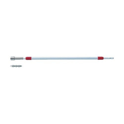 電動充電ドライバーに取り付けて、手の届かない場所などの作業に適しています。作業に合わせて握る位置を変えることができ、軸がブレずに安定したねじ回しが行えます。握りながら作業でき、軸ブレを抑えられる回転ハ |