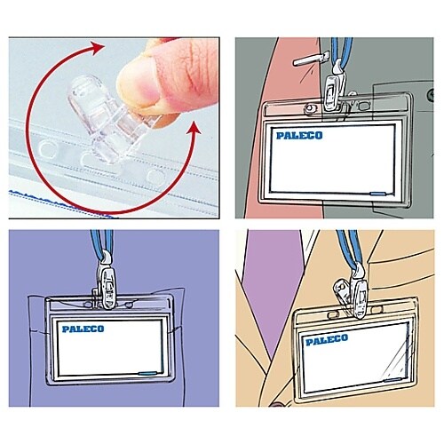 一定の負荷がかかるとジョイント部分が外れる安心構造です。胸ポケットに回転式のクリップ部分を装着すれば、作業の邪魔になりません。 |