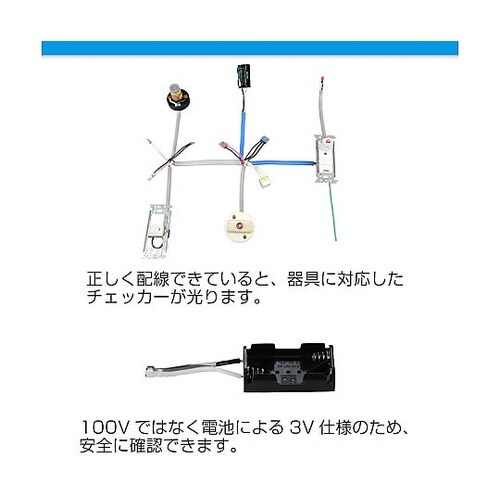 技能試験練習の答え合わせに技能試験は独自の練習では、正しく施工できているかの判断が困難です。このチェッカーは電池を使って電気を流すことで、回路が正しく組まれているか確認が可能。保護回路付きのため、誤っ |