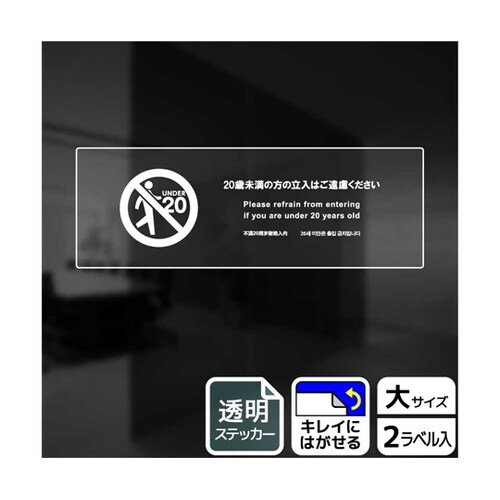 20歳未満・未成年立入禁止の場所を表示する禁止標識透明サインステッカー。 |
