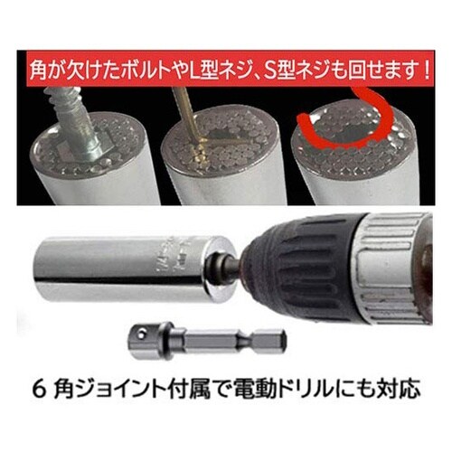 さまざまな形状、サイズに対応したスーパーソケット!6角ジョイント付きで電動ドライバーにも使えます!アイガー製品はスプリング間の密度が高くしっかりキャッチするので電動ドライバーにも使えます角のすり減った |
