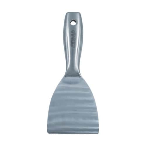 オールステンレス製で使用後の手入れが簡単なへらです。刃部分は硬く、面取りされた先端は傾斜しており、汚れ落としなどに適しています。ハンマーで叩いて使えます。汚れ落としやパテ埋めなどに。