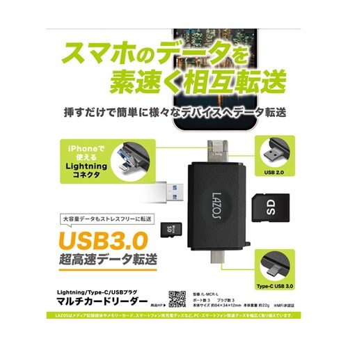 マルチカードリーダー(Lightning / TypeC / USB−A)1ケース(6個入) L−MCR−L