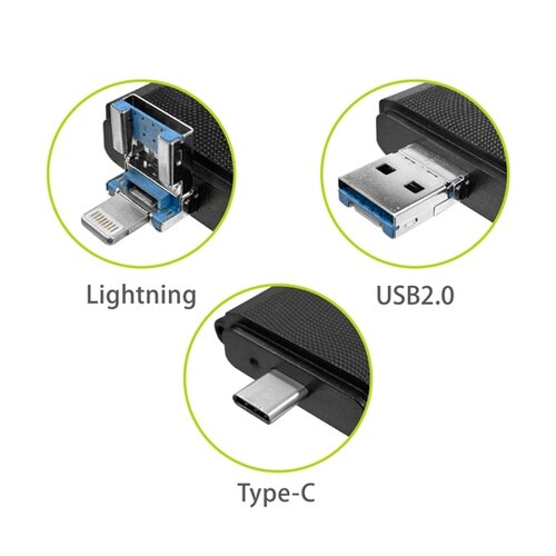 USB3.0対応で高速データ転送できるマルチカードリーダー3プラグ、3ポート搭載で各種デバイスに対応Lightning/Type−C/USBプラグ搭載でiPhone、PC、Androidスマホなど様々 |
