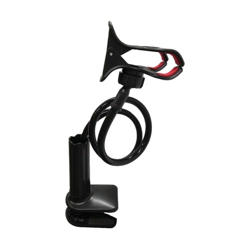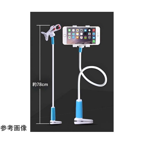 スマホをホルダーに固定することで、手に持たずに長時間楽しむことができます。フレキシブルアームとボールヘッドを動かすことで、目線に合わせた調整が可能です。取り付け部・スマホホルダーには滑り止めのゴムが付 |