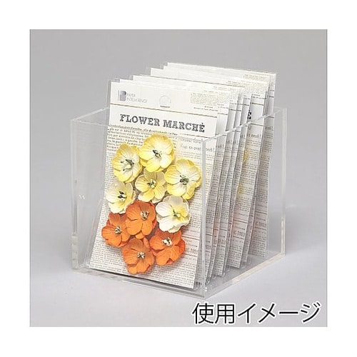 アクリル樹脂製のサイコロ型5面体ディスプレイです。1面が開いた5面体なので、商品にかぶせたり、開口部を横に向けてラックにしたりと自由にアレンジでき、使い方も豊富です。立体的にディスプレイすることでより |