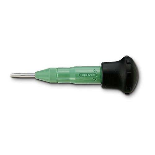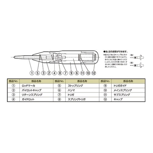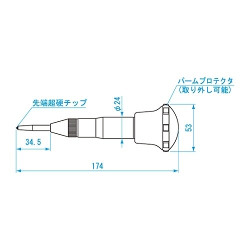 ハンマー不要でポンチ作業ができます。(オートリターンタイプ)後部のキャップをゆるめることにより打ち込み力の強弱調整可能連続ポンチング作業による衝撃から手の平を保護するパームプロテクタ付ご存知ロングセラ |