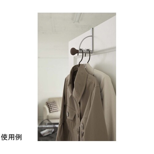 ドアや折れ戸に簡単・便利なドアハンガー。滑りにくいシリコン素材になっているので洋服をそのまま掛けられます。帽子やバッグなどを掛けてもOK |