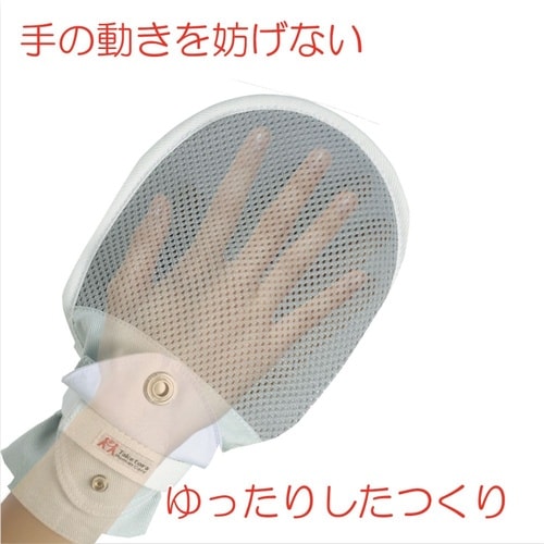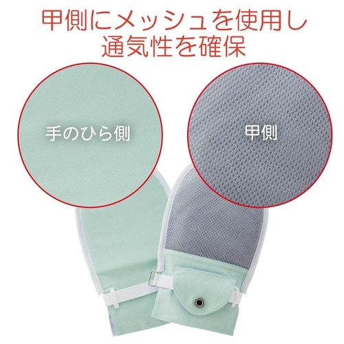 交換可能なベルトカバーで、甲側に通気性の良いメッシュ地を採用しています。手袋の内部はゆったりとした設計で余裕があり、手指の動きを妨げません。面ファスナー(マジック式)により調整可能な手首ベルトです。手