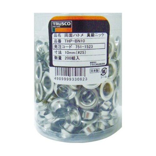 アズワン 両面ハトメ 真鍮ニッケルメッキ 15mm 50組入 (円筒ケース入) THP−BN15 A04G-5898