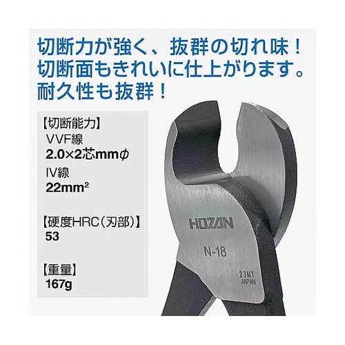 IV線22mm^2でも片手で軽く、きれいに切断できます |