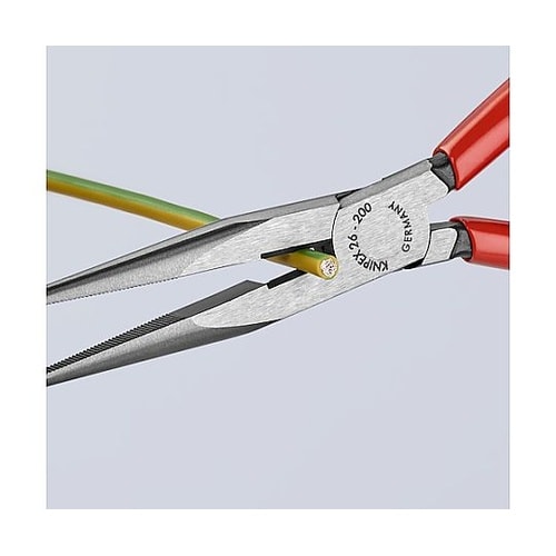 ヘッドは頑丈で、しかも精密に作られています。ロングタイプで、先端形状は半丸型です。つかみ面には滑り止めの横スジが入っています。入念な焼入れ処理が施されたカッター部の硬度は約HRC61です。 |