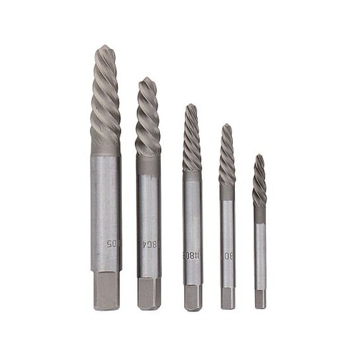 ボルトが簡単に抜ける。折れ込んだボルトにドリルで下穴をあけエキストラクターを差し込み、左へねじ込むと、ボルトは簡単に抜けます |