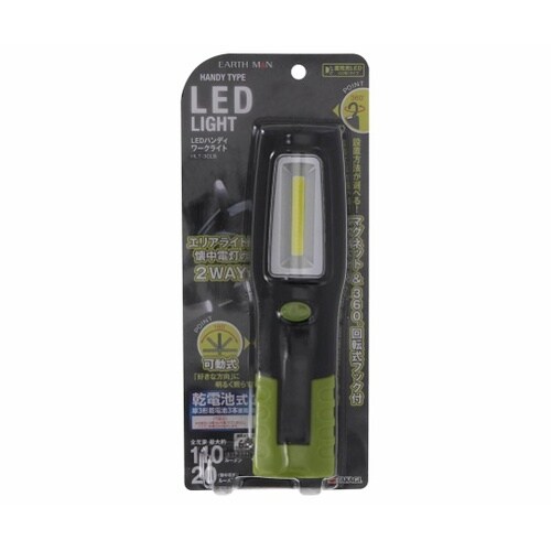 作業灯に好きな方向に明るく照らす可動式設置方法が選べるマグネット&360°回転式フック付エリアライトと懐中電灯の2WAY仕様 |