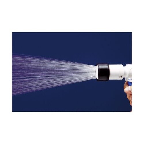 通水・止水の切り替えが手元のレバーでワンクリック操作で簡単です。スリーブを回すと4つの水形(キリ・ストレート・ジョロ・シャワー)と切り替えができます。ノズルとコネクターを簡単に着脱できます。屋外散水用 |