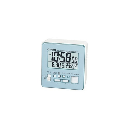 温度・湿度計付きのデジタル置時計。正確な時を刻む電波受信機能付きです。 |