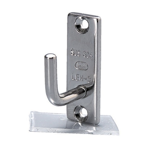 口の開きが広く、物を掛ける作業が効率的です。掛ける部分に奥行きがあり、厚みのある道具が掛けられるタイプです。壁面・床面・柱などに設置し、チェーン・ワイヤ・ロープの壁面金具として。食品加工現場の道具掛け |