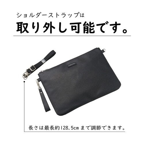 シンプルなデザインが魅力、ちょっとした小物の持ち運びができるポーチ。手に持つ、肩に掛ける。2WAYクラッチポーチ。ストラップ、ショルダーベルトは取り外し可能。軽やかな使い心地、しなやかな手触りのマイク