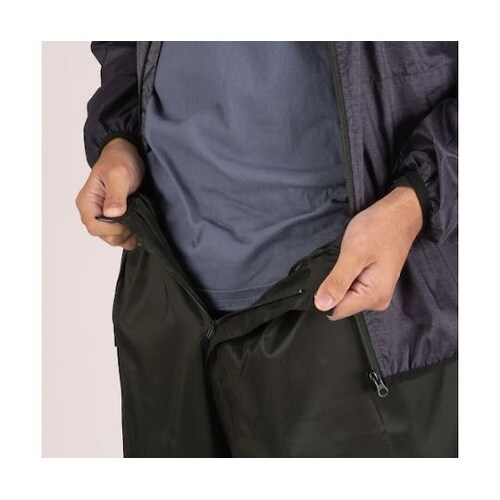 ストレッチ素材を採用しているため脚の曲げ伸ばしが楽に行えます。泥や風、汚れから体をガードします。撥水加工を施しています。着脱が楽な前開きタイプです。裾のゴムひもを絞る事で汚れを防ぎ、バタつき感を軽減し