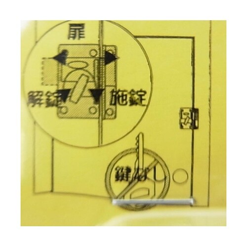 玄関、室内の木製開き扉の内側からの施錠に(鍵なし)室内から内締式、左右兼用で操作し易い取り付けの際、木部の割れやネジの破損を防ぐためキリで下穴を開けてください。鍵なし。外側から施錠、解錠できません。 |