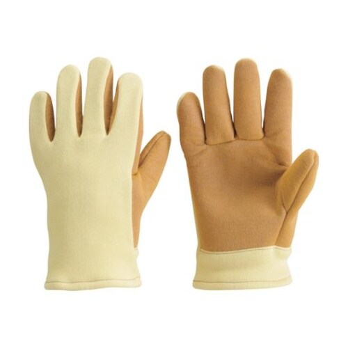 手のひら側に高強力素材PBO繊維ザイロンRを使用しています。手のひら部内側にはメタ系アラミド繊維フェルトを断熱材として中材に使用しています。手の甲側はパラ系アラミド繊維を使用しています。建設・溶接作業 |