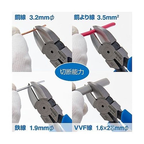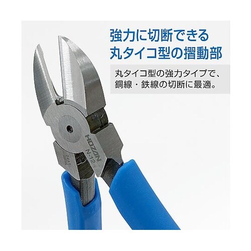 強力に切断できる丸タイコ型の摺動部丸タイコ型の強力タイプで、銅線・鉄線の切断に最適。 |