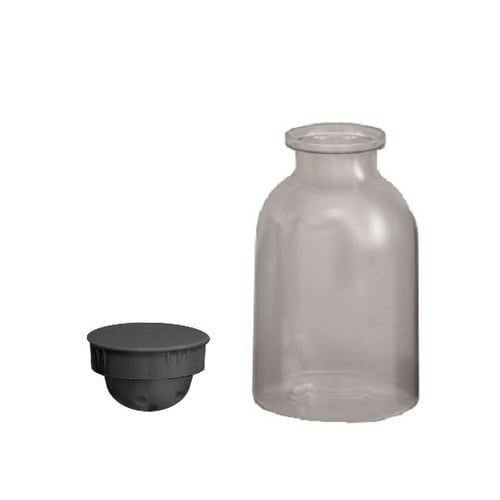 樹脂製散薬瓶。ラベル(黒)、シリカゲル入り