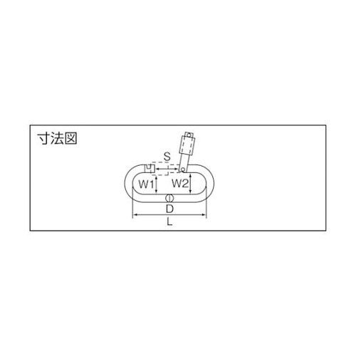 環の付いた外開きの構造なので、不用意に開くことがありません。チェーン・ワイヤ・ロープなどの連結や、端末の金具のジョイントに。 |