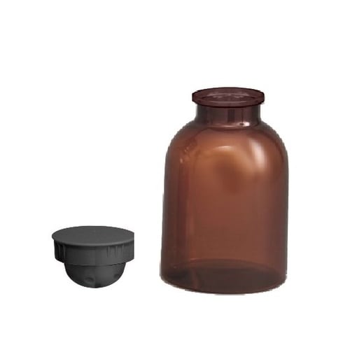樹脂製散薬瓶。ラベル(黒)、シリカゲル入り |