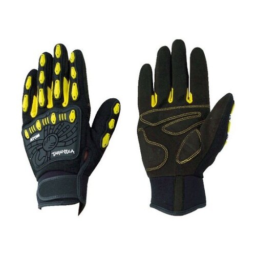 手のひらには独自意匠のウレタンパッドを採用し衝撃を緩和します。手の甲と指先をプロテクトでがっちりガードします。指股には通気性の良い素材を使用し蒸れにくくなっています。湾曲縫製なのでグリップがしやすく耐 |