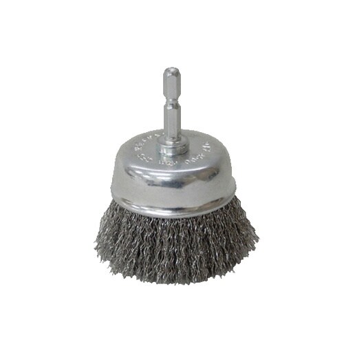 回転工具に取付けて研削、研磨するワイヤーブラシです。チャックがすべらない六角軸を採用。ペンキ剥がし、サビ取り、バリ取り等に使用します。