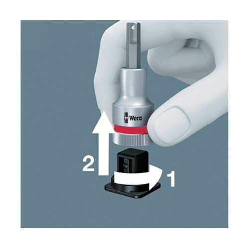 各サイズが色で分けられているため、サイズを簡単に選べます。ホールディングファンクション(HF)により、ボルトやナットを着磁機能なしで保持できます。クロムメッキ仕上げです。対辺六角形状タイプのソケットで |