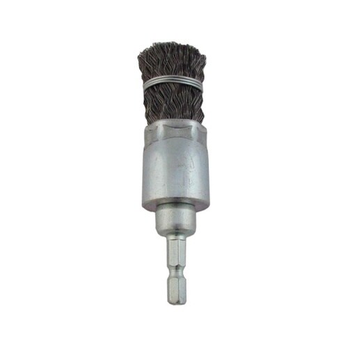 回転工具に取付けて研削、研磨するワイヤーブラシです。チャックがすべらない六角軸を採用。ペンキ剥がし、サビ取り、バリ取り等に使用します。 |