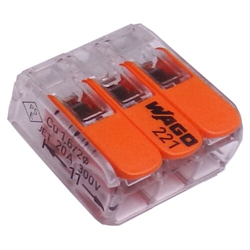 屋内配線工事や照明配線などの電線同士の接続にご使用いただけます単線・より線・可とうより線も接続可能操作レバーが本体に格納され、結線後の不用意な誤操作を防止ワンタッチ結線のため工具は不要結線後のテープ巻 |