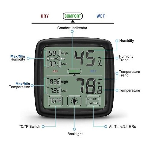 広視野角の大型LCDデジタルディスプレイに、温度と湿度を同時に表示してとても見やすいデザインです。シンプルな表示項目となっているので、必要な情報を一目で把握できます。室内の管理がしやすく、赤ちゃんのい |