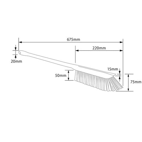 狭い隙間の隅まで届いてスッキリ洗浄!幅15mm、長さ675mmの細長い設計により、奥行きがある幅の狭い箇所にも柄部分まで入れて清掃できます。先端部分は前方に向かってブラシを植毛しているため、隙間の奥の