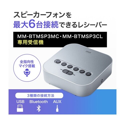 MM−BTMSP3MC(スピーカーフォン)、MM−BTMSP3CL(クリップ式マイク)を最大6台まで連結して接続することができます。※本製品とスマートフォン・パソコンがBluetooth接続の場合は最 |