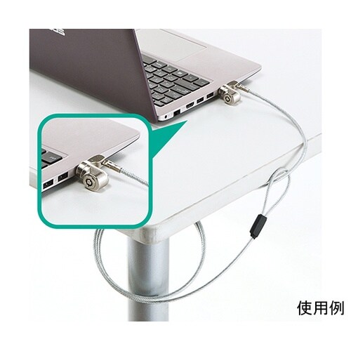 狭い場所でも脱着が容易なL字型シリンダの一体型セキュリティワイヤー。eセキュリティビニール袋簡易パッケージです。シリンダ部がL字になっているので、取り付け機器の側面、裏面など狭い場所でも脱着が容易です |