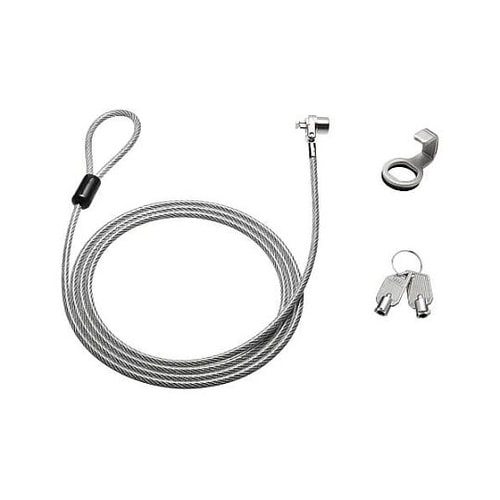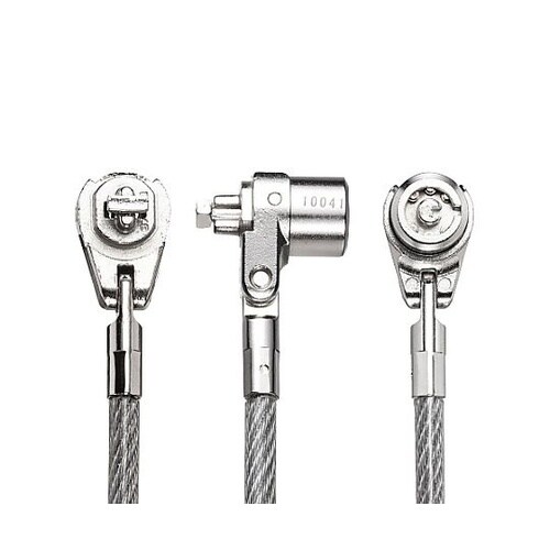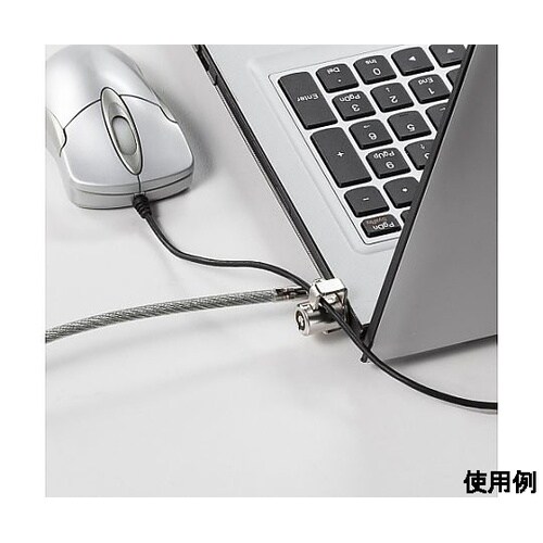 3×7mmの標準スロットに取り付けるセキュリティワイヤーです。周辺機器などのケーブルも同時にロックができるパーツ付きです。 |