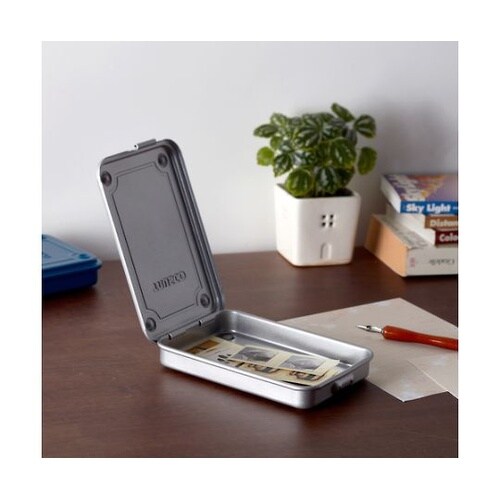 ハードな使用に耐える頑丈なプレス一体型です。片開き構造です。四隅に横滑り防止用凹凸が付いており積み重ねに便利です。